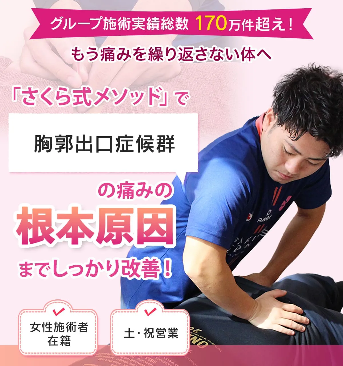 当院での胸郭出口症候群の通院の目安として1〜5回の施術で緩和される方が多いですが重症の場合は数ヶ月から半年程度の施術で症状は改善されます。
