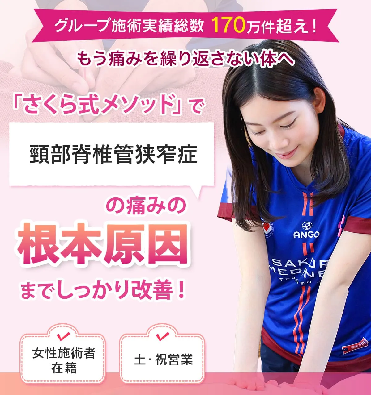 当院での頸部脊柱管狭窄症の通院の目安として1〜5回の施術で緩和される方が多いですが重症の場合は数ヶ月から半年程度の施術で症状は改善されます。